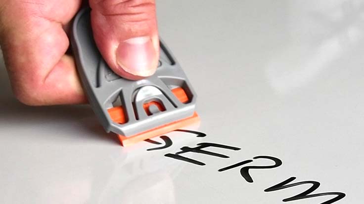 Scraping shouldn’t mean scratches or injuries. Metal scrapers often damage glass, acrylic, coated finishes, and even cause personal cuts. Scraperite invented the plastic razor blade as a safer, non-scratch alternative. Our plastic scraper blades deliver clean, controlled removal of stickers, adhesives, paint, and residue—without the risks of metal. From glass and acrylic surfaces to electronics and delicate finishes, Scraperite provides the original, patented solution trusted worldwide. Choose the right blade material with our Blade Selection Wizard and see why most jobs never need a metal scraper.